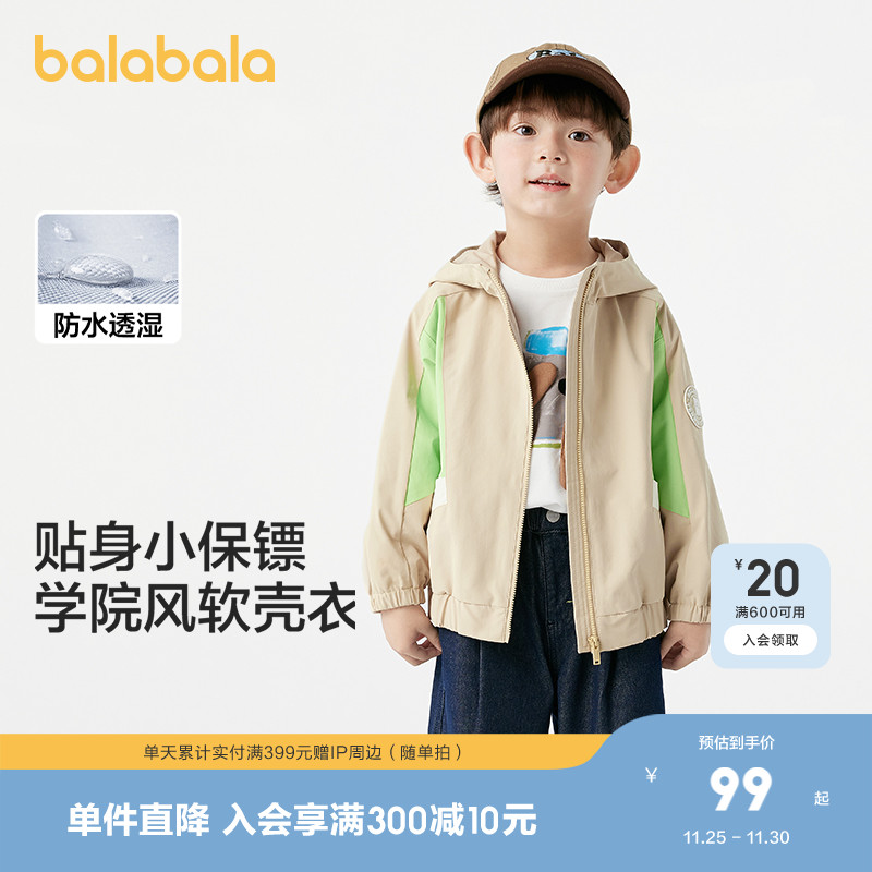 巴拉巴拉童装儿童外套男童上衣春秋装2025软壳衣宽松连帽百搭小童