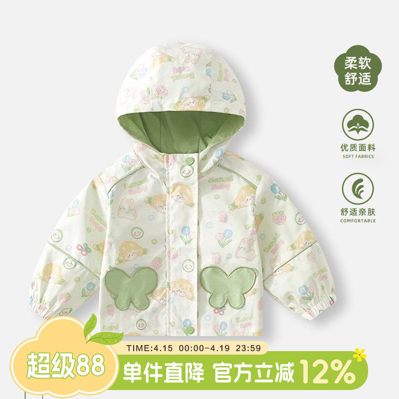 女童外套2026春秋连帽上衣小童休闲冲锋衣女宝宝衣服春装外出服