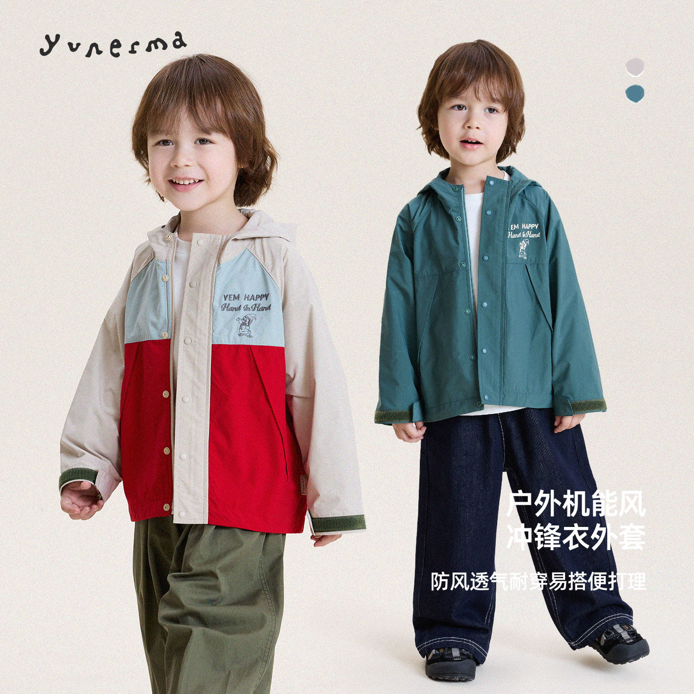 男童冲锋衣春季宝宝撞色连帽开衫春中小童春装衣服儿童外套春秋款