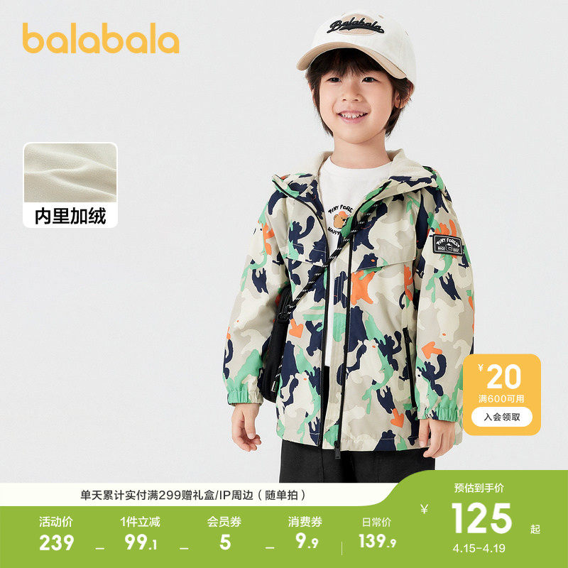 巴拉巴拉童装儿童外套男童春秋装衣服软壳衣加绒连帽百搭小童潮酷