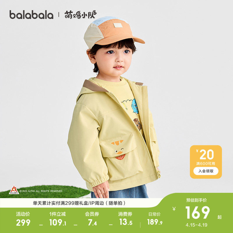 巴拉巴拉童装儿童外套男童上衣春秋装衣服软壳衣宽松连帽百搭小童