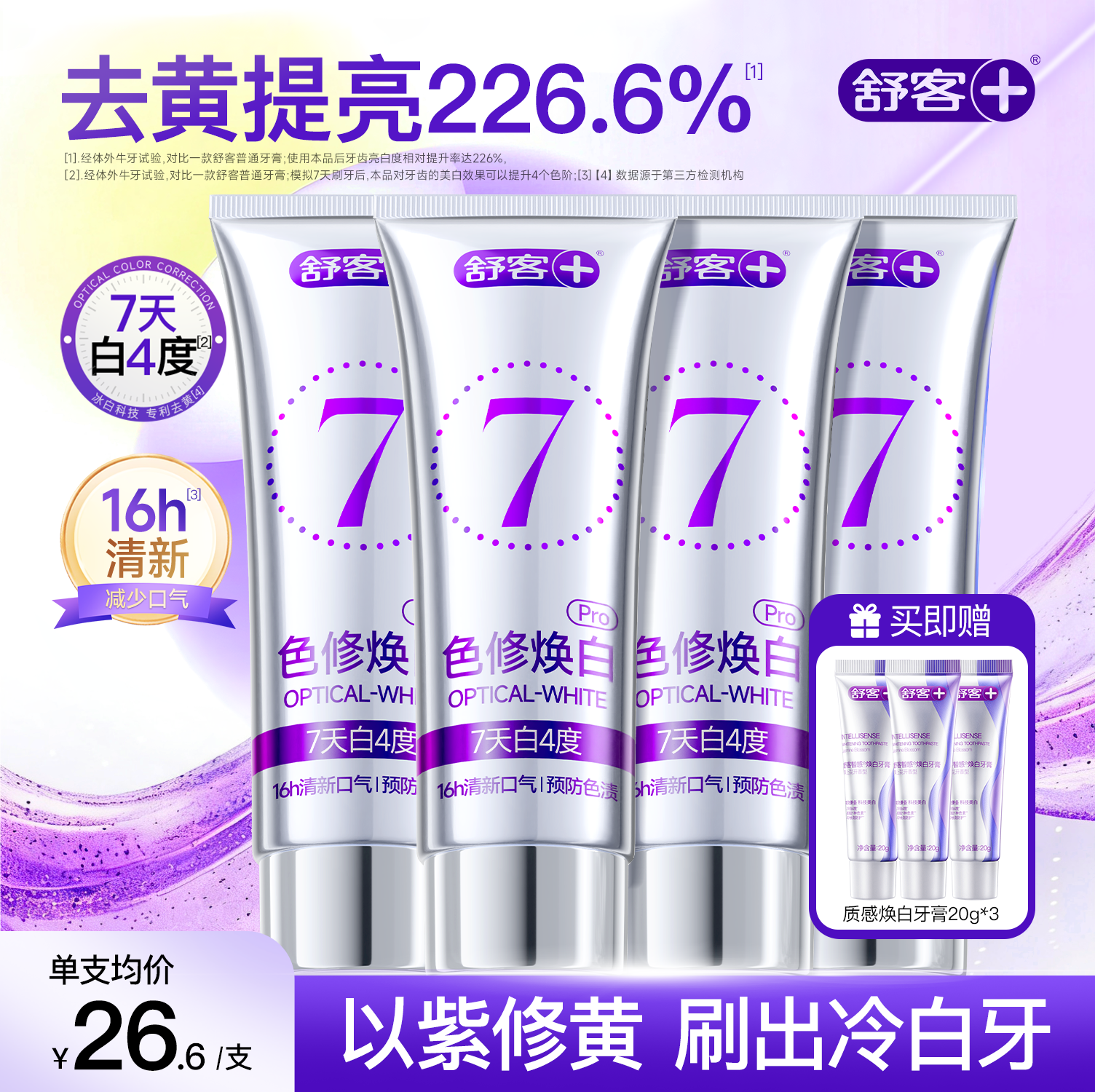 【肖战同款】舒客色修白牙膏美白冷光蓝紫色去黄清新口气旗舰正品