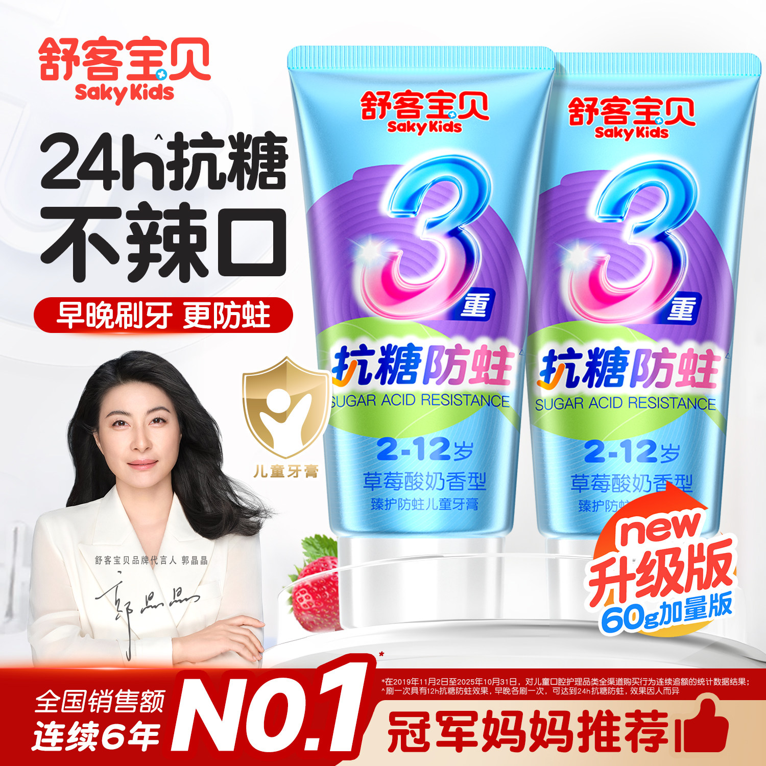 舒客宝贝儿童12H抗糖盾牙膏防蛀固齿低氟2-12岁换牙期草莓味正品
