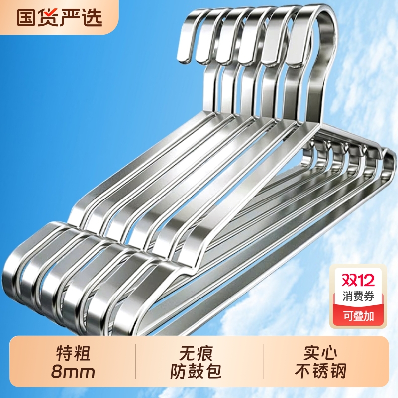 高品质不锈钢衣架304加粗实心家用挂衣服铁衣撑无痕衣挂特大特粗