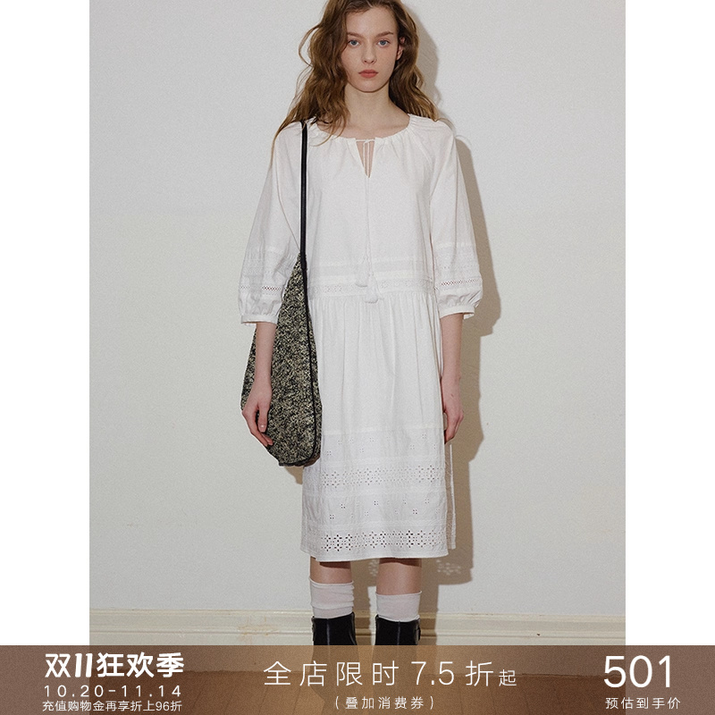 枕梦村庄 似曾相识 初秋温柔风复古宫廷蕾丝花边复古连衣裙中长款