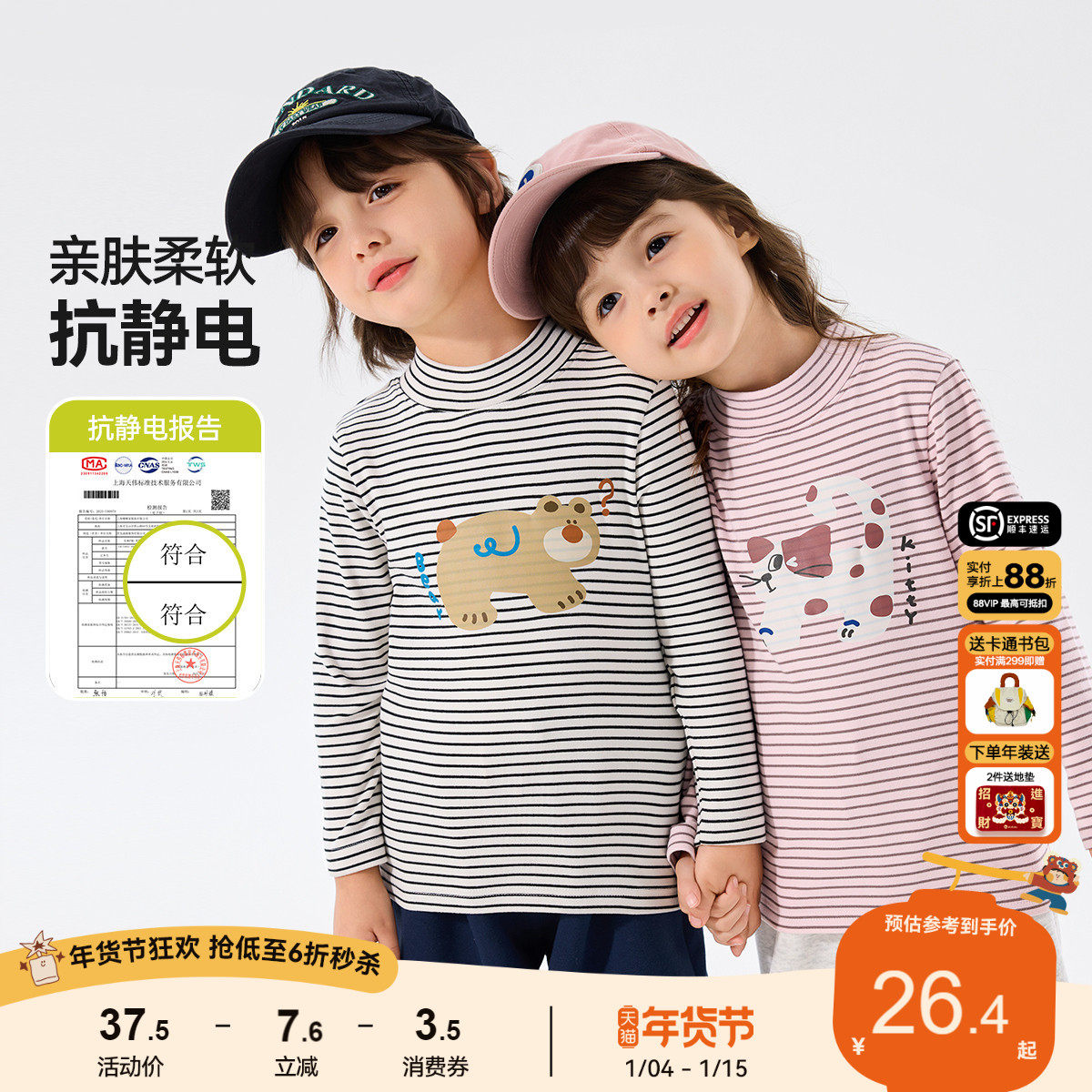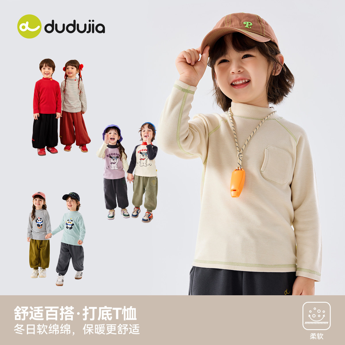 【79.8三件】嘟嘟家男童秋冬T恤冬季儿童半高领打底女童冬款上衣