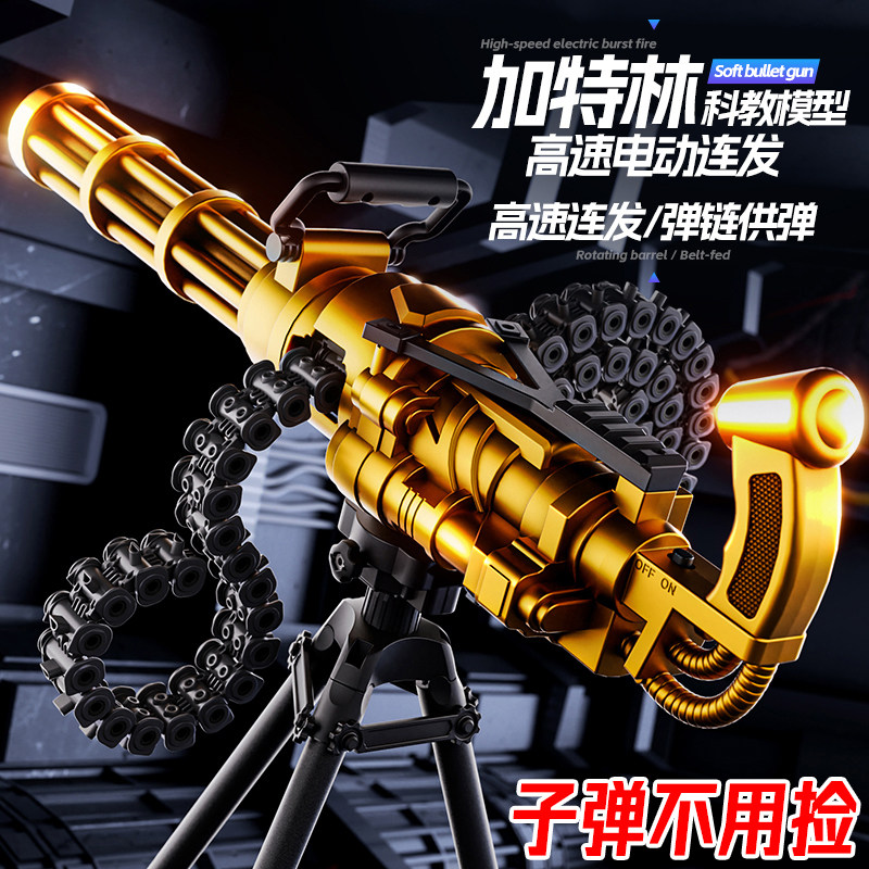 黄金加特林重机枪电动连发弹链儿童加特琳水晶玩具男孩软弹机关枪
