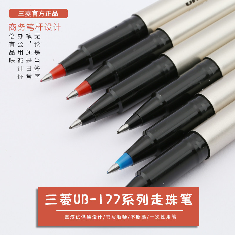 日本uni三菱UB-177直液式走珠笔商务办公签字笔学生中性笔水笔0.7mm黑色考试笔处方笔合同签名笔面试三菱水笔