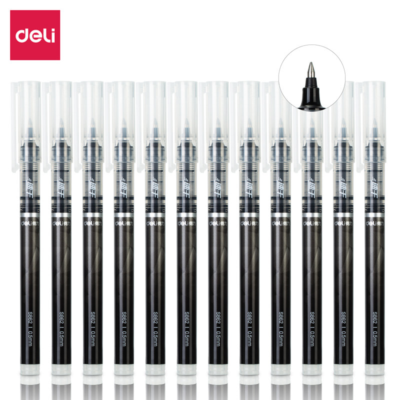 得力 S656/S657直液式走珠笔0.5mm碳素笔签字笔红笔黑笔水笔学生用子弹头签字笔黑笔学生中性笔混色可留言