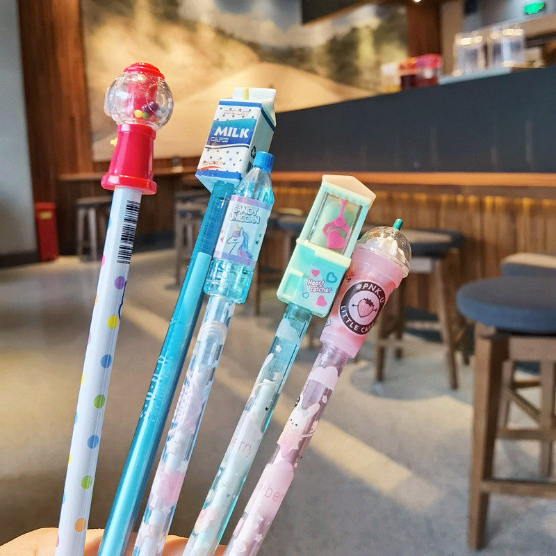 创意饮料瓶扭蛋机茶杯造型学生中性笔黑色0.5mm水性笔签字笔