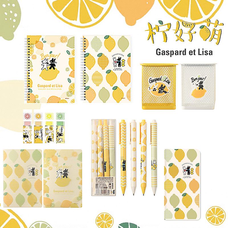 晨光卡斯波丽莎柠好萌学生中性笔黑笔0.5自动笔钢笔订书机橡皮套装