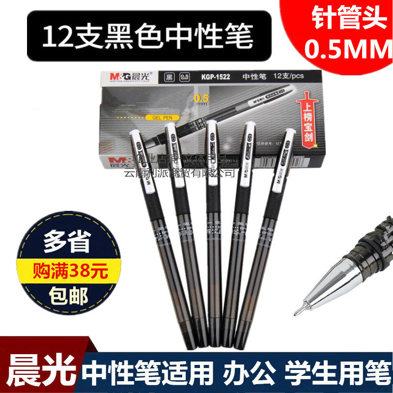 晨光文具学生中性笔0.5mm 半针管水笔黑蓝红色办公12支GP1280包邮