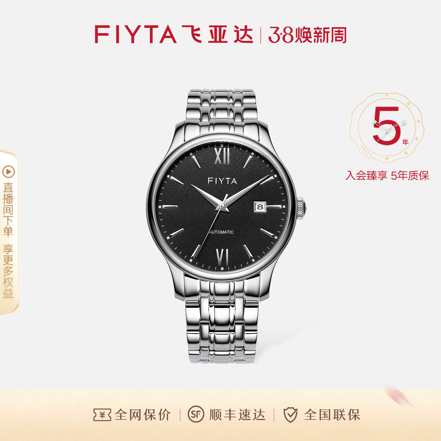 飞亚达手表男全自动机械男表商务经典钢带大气腕表男表送男友礼物
