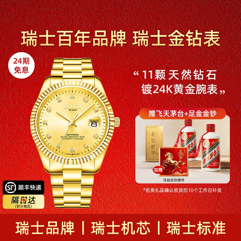 瑞士认证正品牌男士手表含真金8颗真钻进口芯全自动机械男表名式