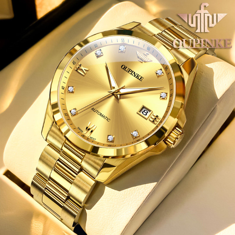 24k全金色瑞士进口机芯全自动机械男表真钻镶嵌新款轻奢男表十大