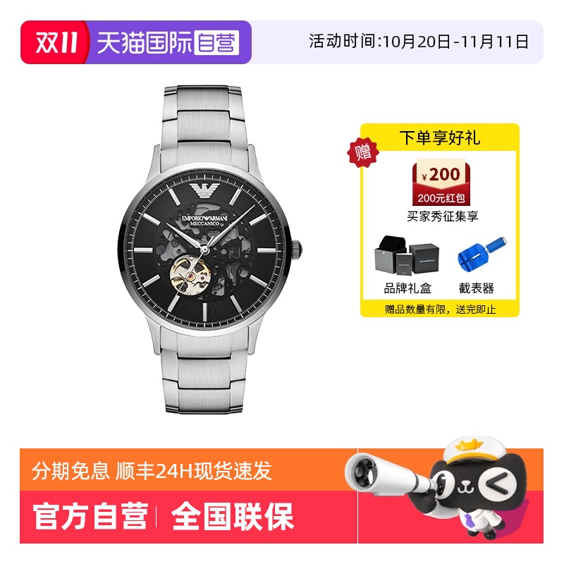 【自营】阿玛尼手表男 时尚潮流镂空全自动机械男表AR60055正品