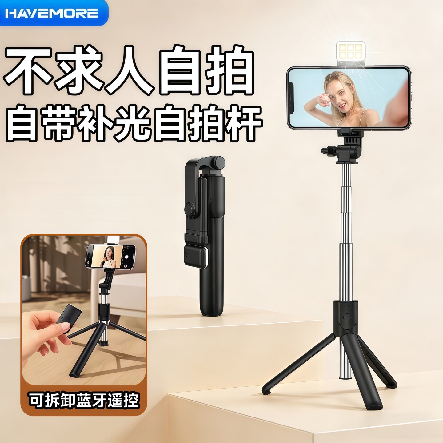 - 自拍杆补光