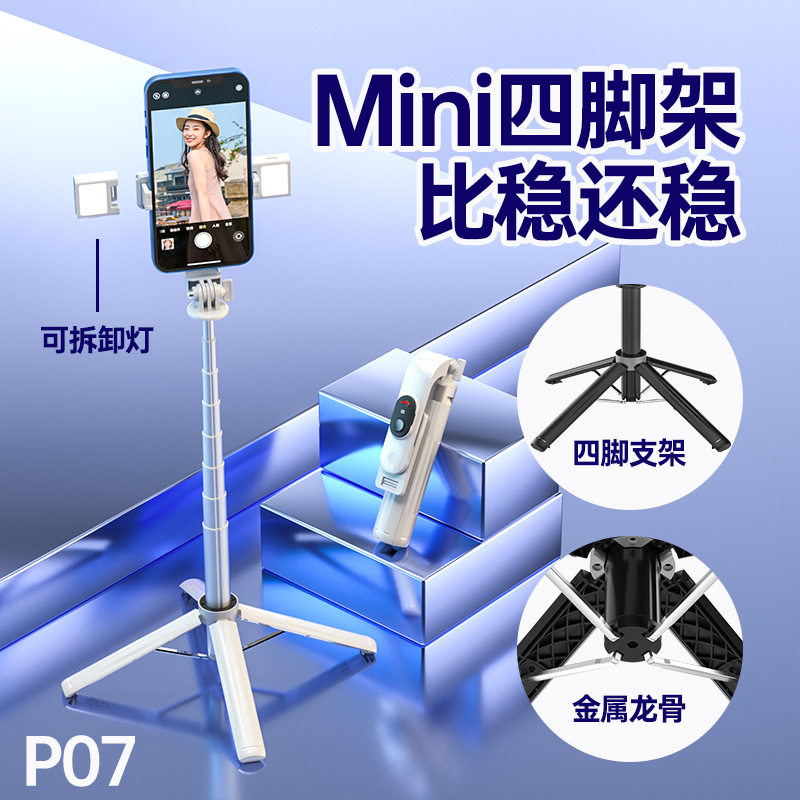 新款mini四脚架蓝牙自拍杆稳定通用手机自拍杆落地直播手机支架