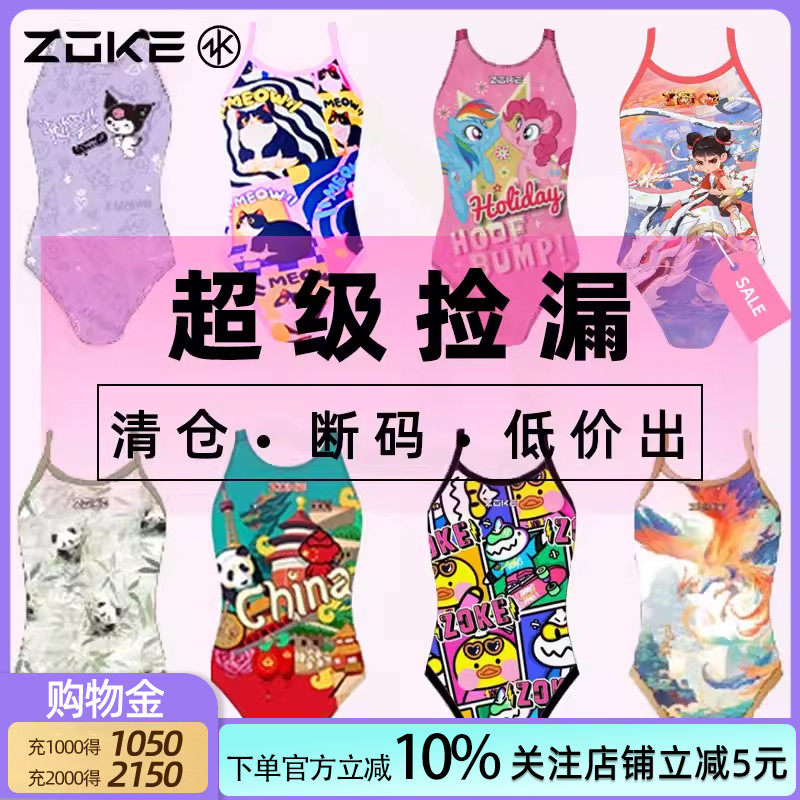 洲克儿童泳衣连体三角女孩新款训练zoke专业比赛竞速女童游泳衣