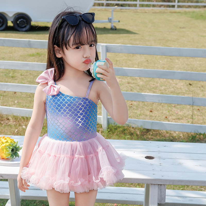 夏季人鱼姬美人鱼泳衣人鱼尾巴泳衣女童游泳衣裤套装儿童温泉泳装