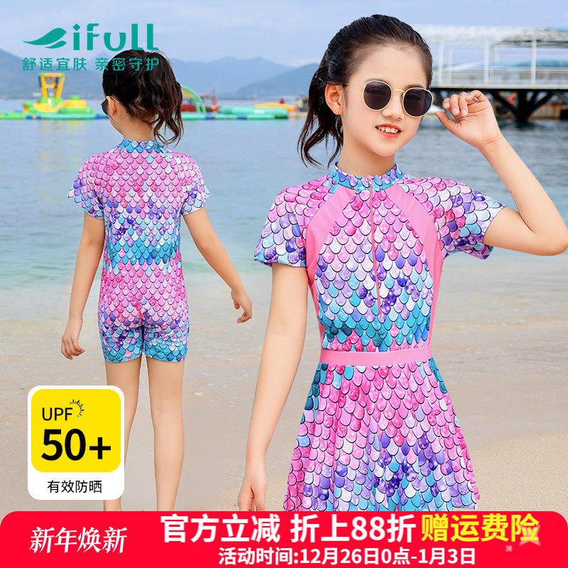 宜肤美人鱼女童游泳衣儿童女孩2025新款6-10岁中大童可爱连体防晒