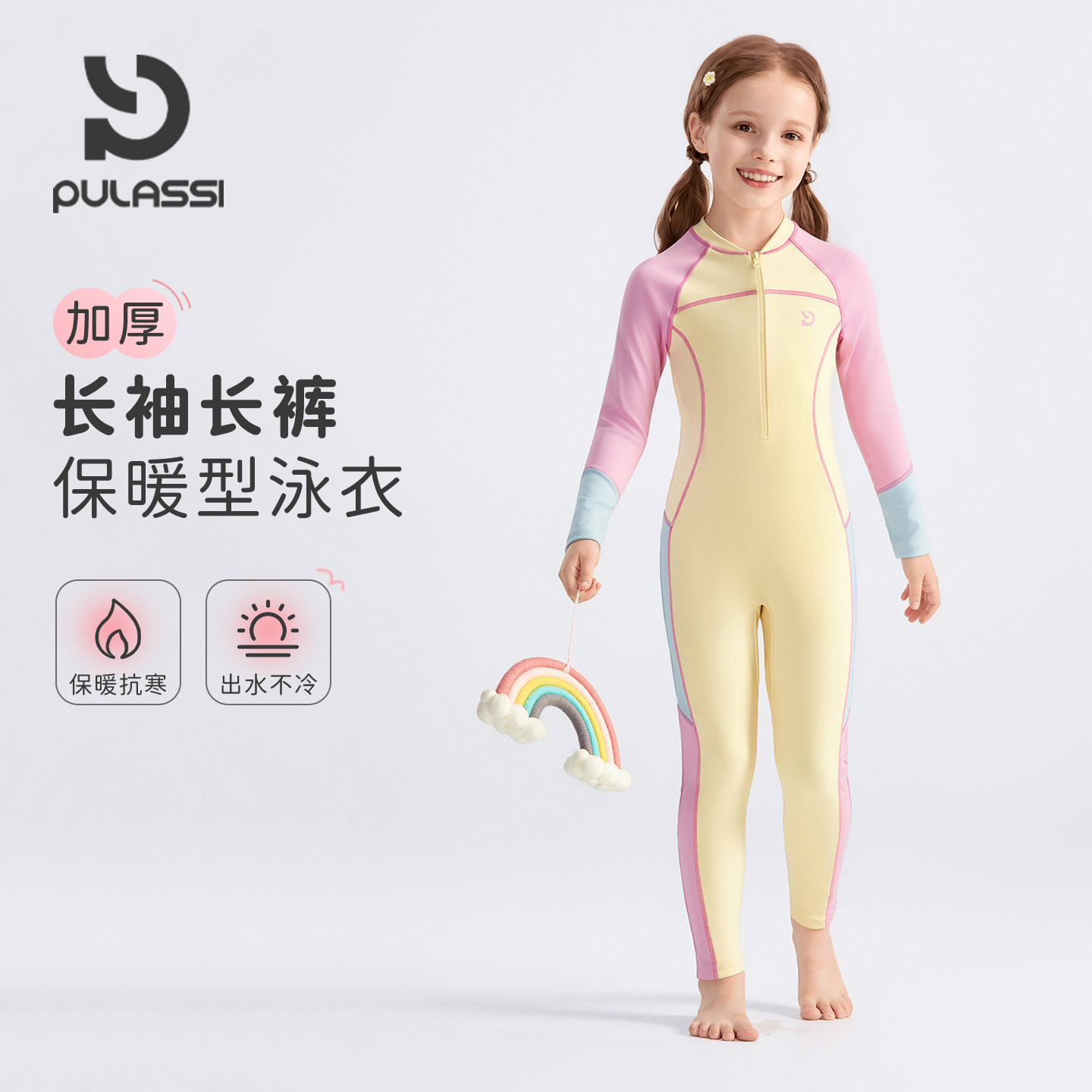 pulassi泳衣儿童女孩泡温泉新款专业保暖防寒长袖长裤女童游泳衣