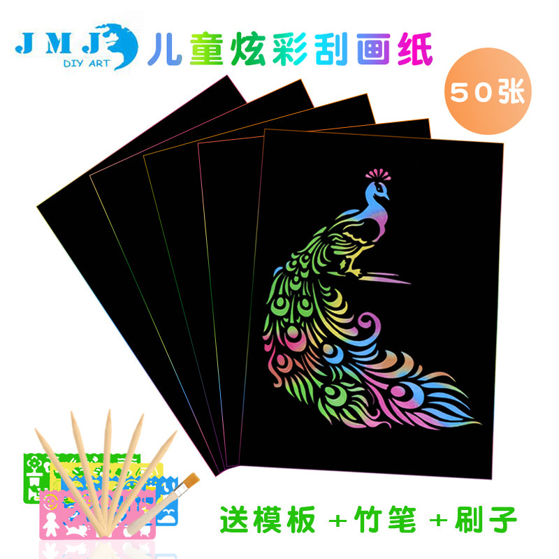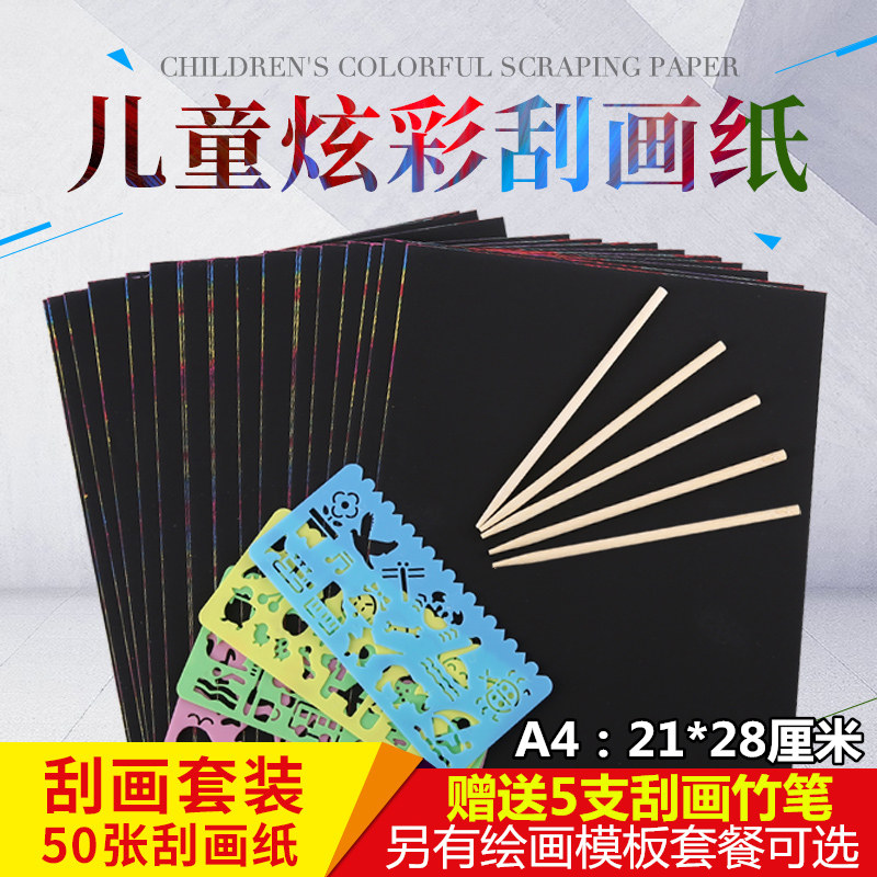 包邮A4炫彩刮画纸刮蜡纸刮刮画儿童手工diy幼儿园彩色刮刮画50张