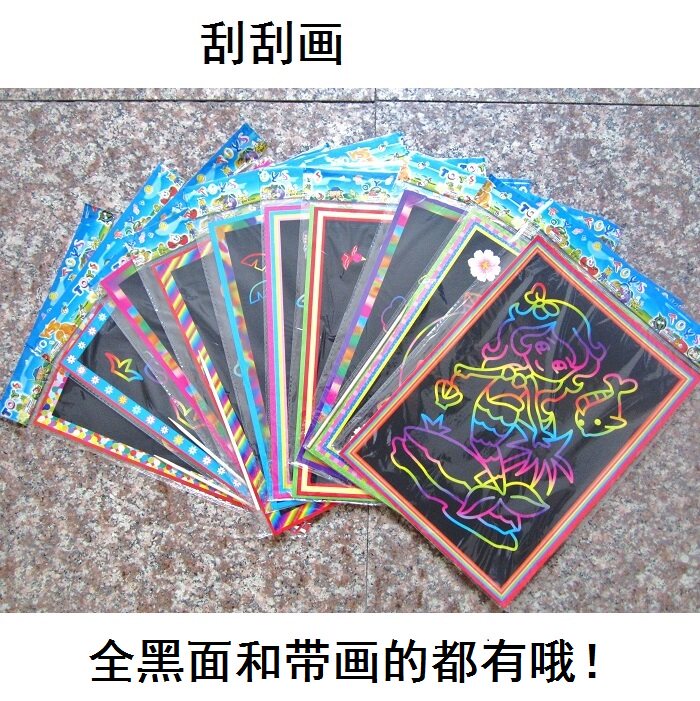 儿童绘画炫彩刮刮画创意diy刮画纸16k8kA4益智涂鸦刮画带竹签包邮