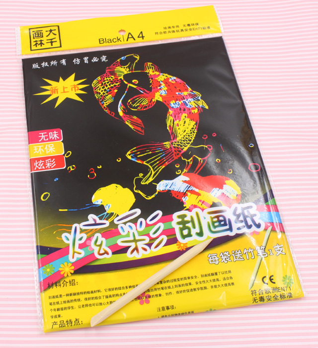 包邮炫彩刮画纸A4 加厚刮画纸 儿童刮画纸 送竹笔包邮 30张