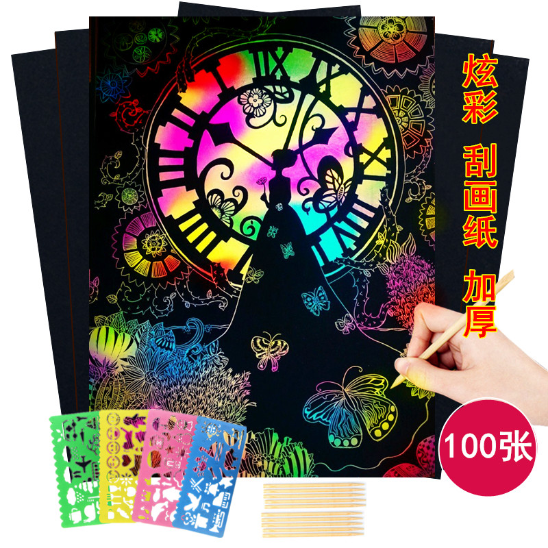 刮画纸 儿童A4炫彩8k无毒加厚幼儿小学生涂鸦创意包邮刮刮画100张
