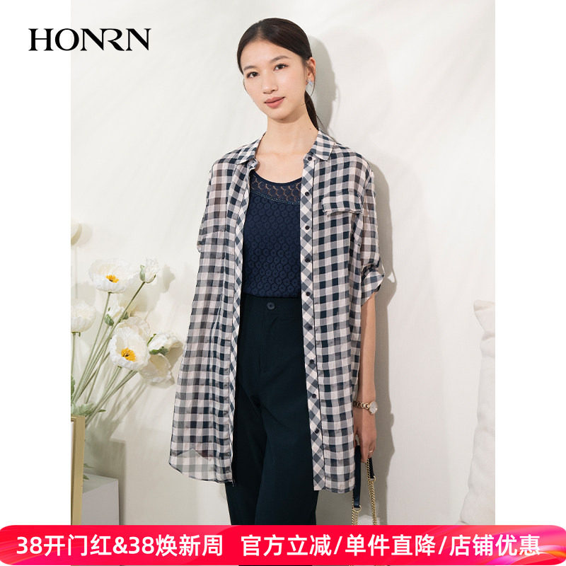 - 夏季格子衬衫女