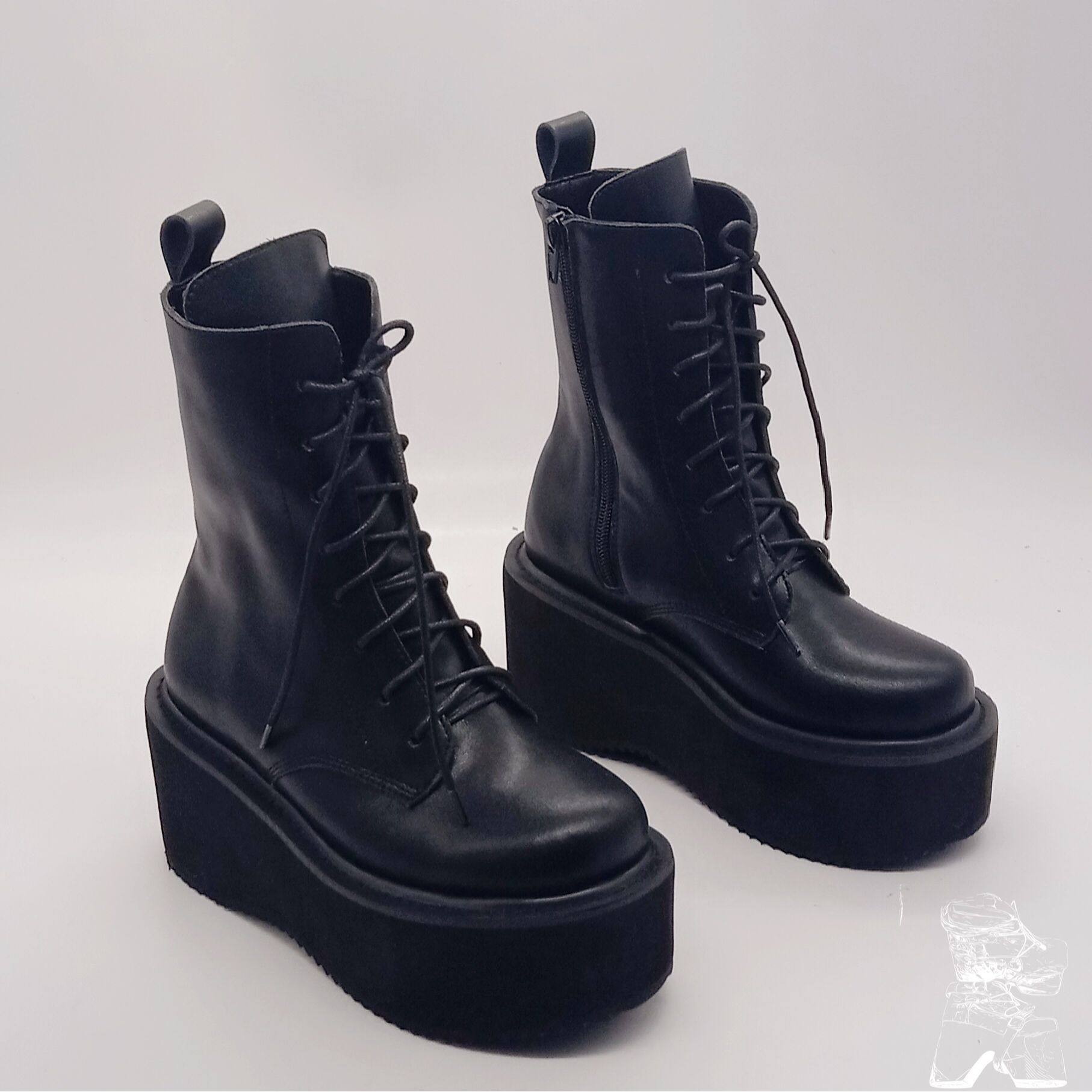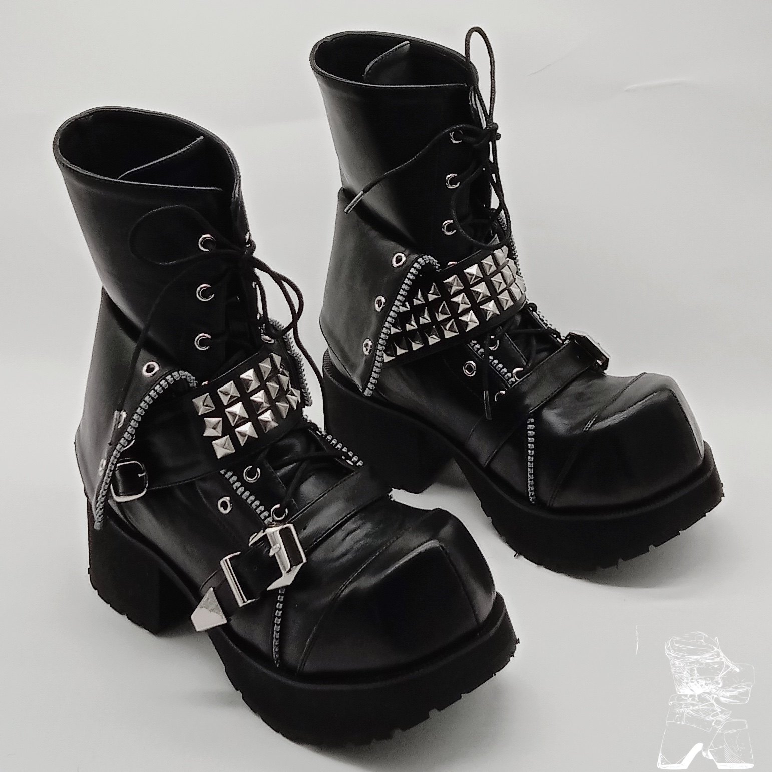antaina2021春秋菱型松糕底靴厚底靴马丁靴情侣朋克摇滚短筒1455