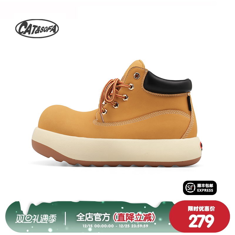 【UFO系列】猫与沙发/秋冬马丁靴丑萌大头百搭短靴情侣增高大黄靴