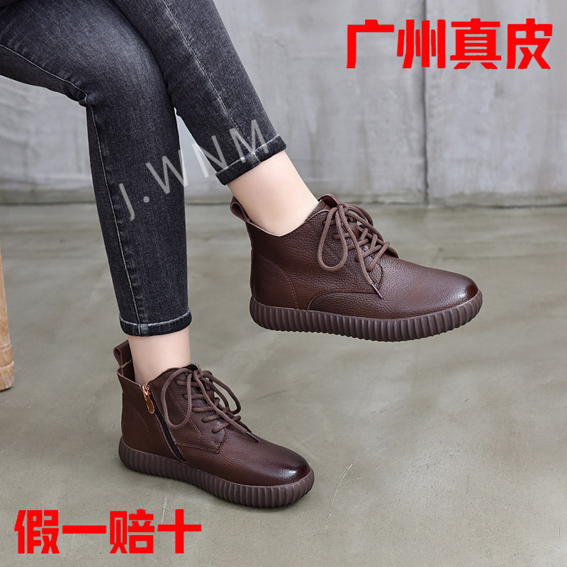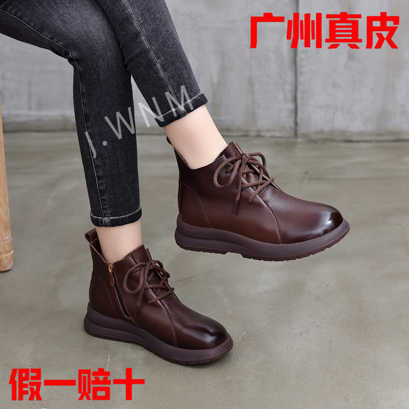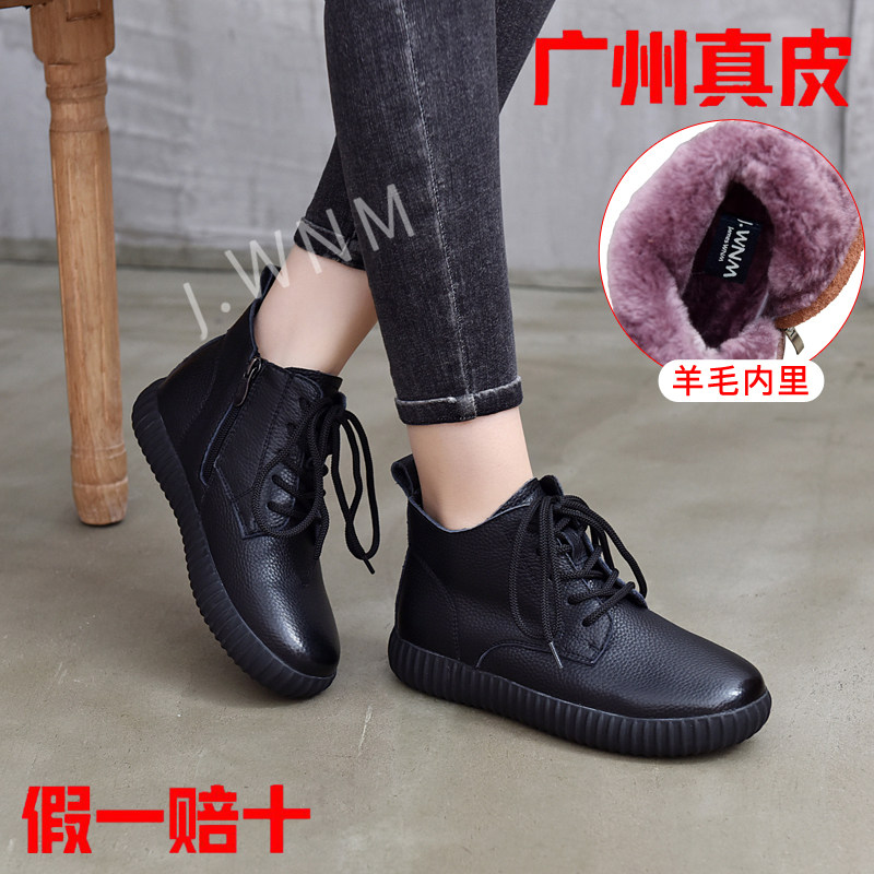 真皮羊毛马丁靴情侣款系带拉链2025秋冬新款平底软底休闲舒适短靴
