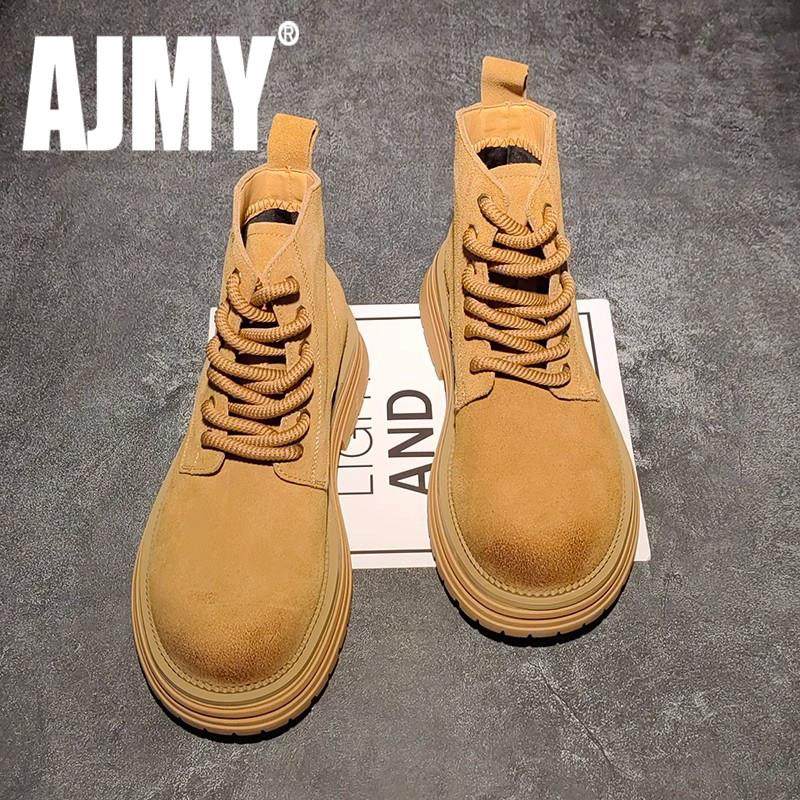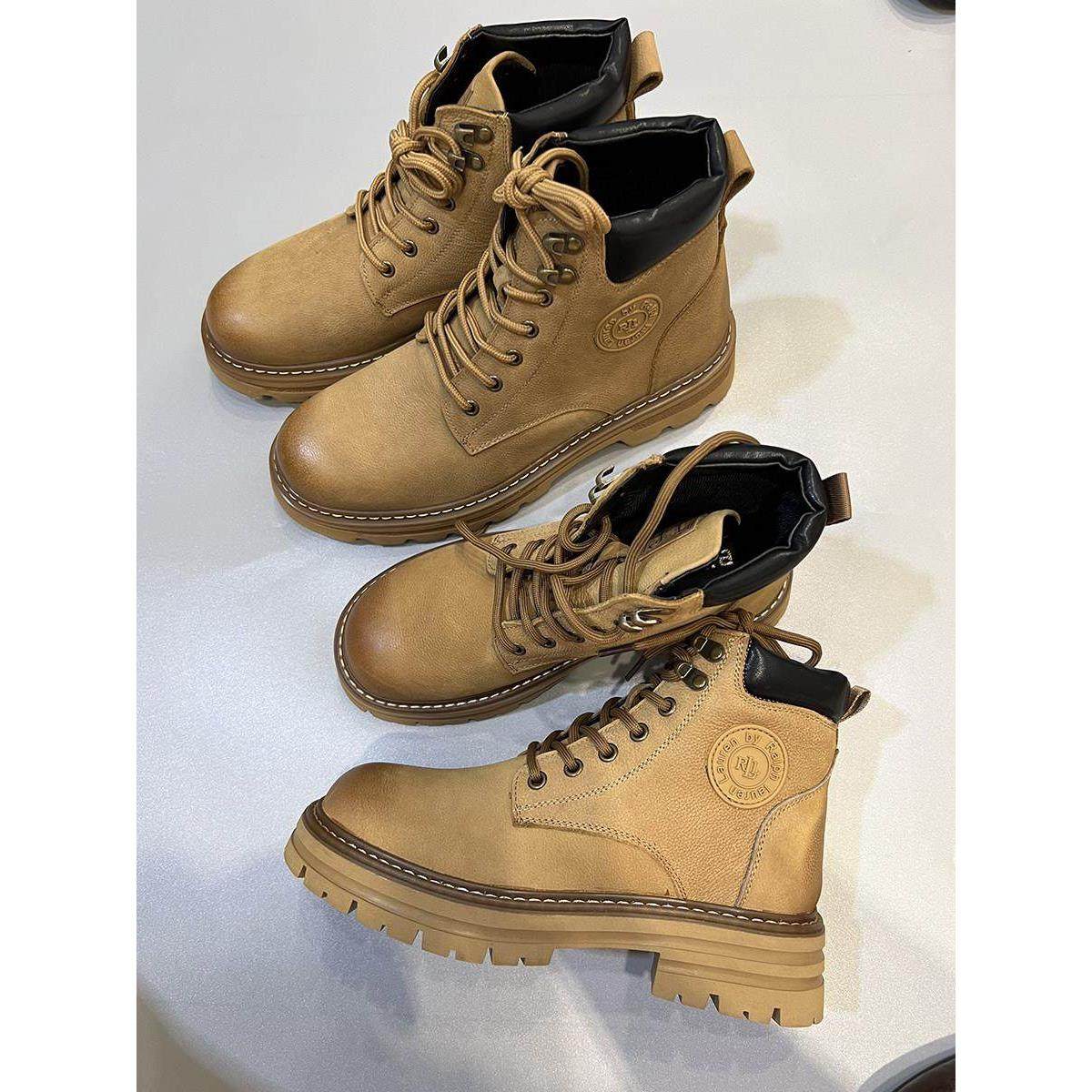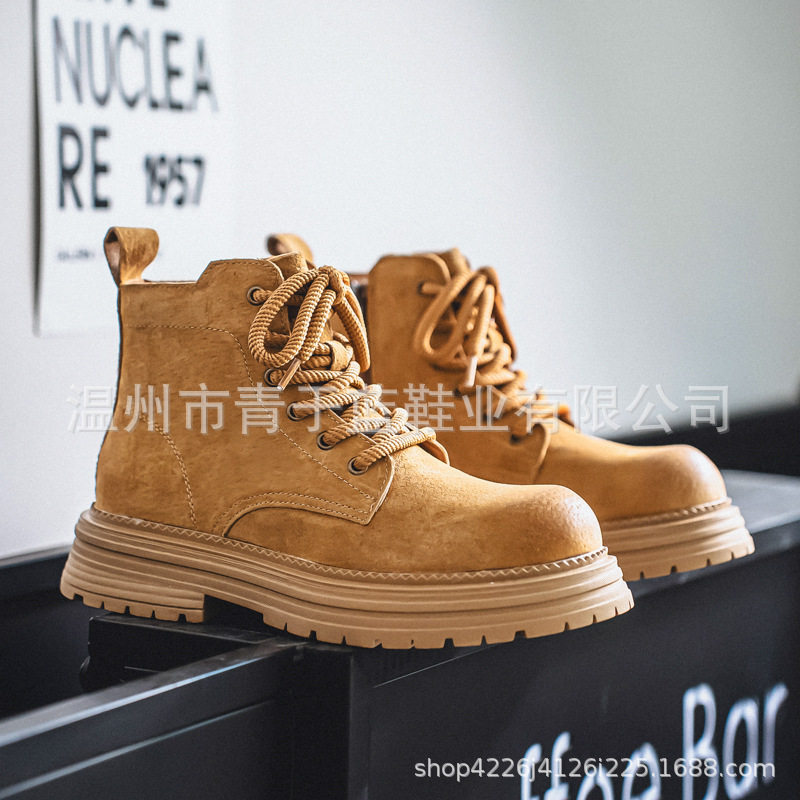 王俊凯同款骆驼马丁靴男秋冬季高帮保暖大黄靴情侣真皮户外工装靴