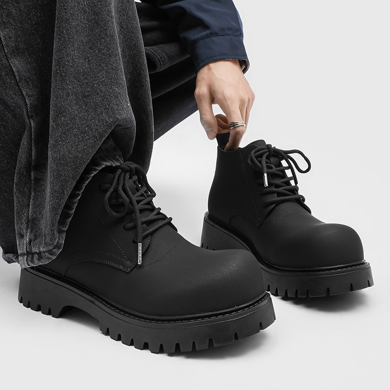 2025新款厚底增高鞋子马丁靴情侣哑光高级感男士休闲英伦风工装靴