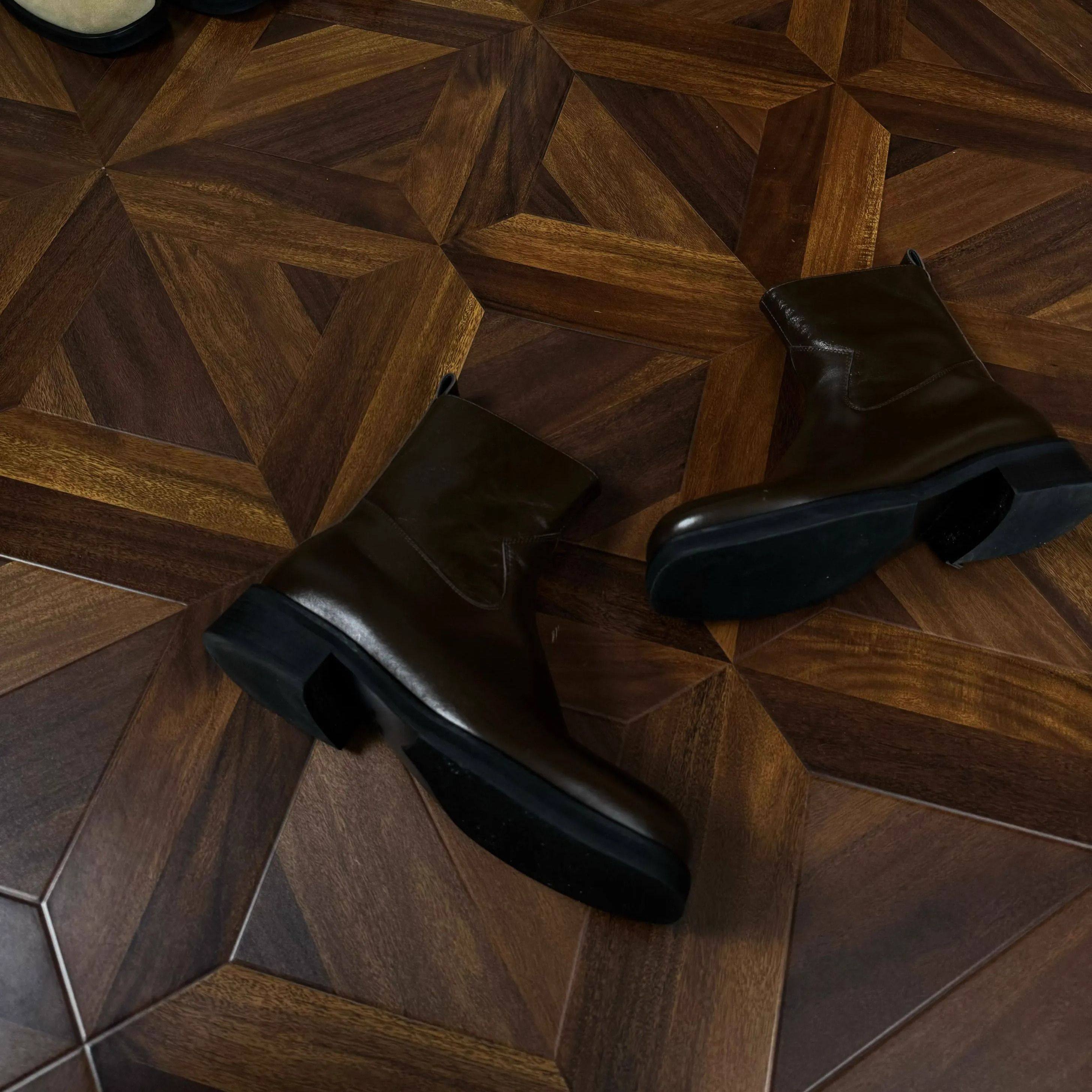 店主实拍松糕厚底靴防寒马丁靴情侣鞋真皮鞋短靴圆头加厚牛皮2003