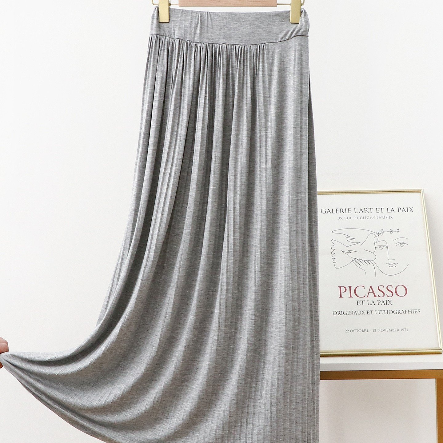 薄款半身裙女夏莫代尔长裙高腰垂感纯色a字裙长款百搭大摆打底裙
