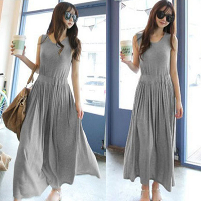秋夏季韩版女连衣裙莫代尔长裙打底裙显瘦高腰长款背心裙纯色大摆