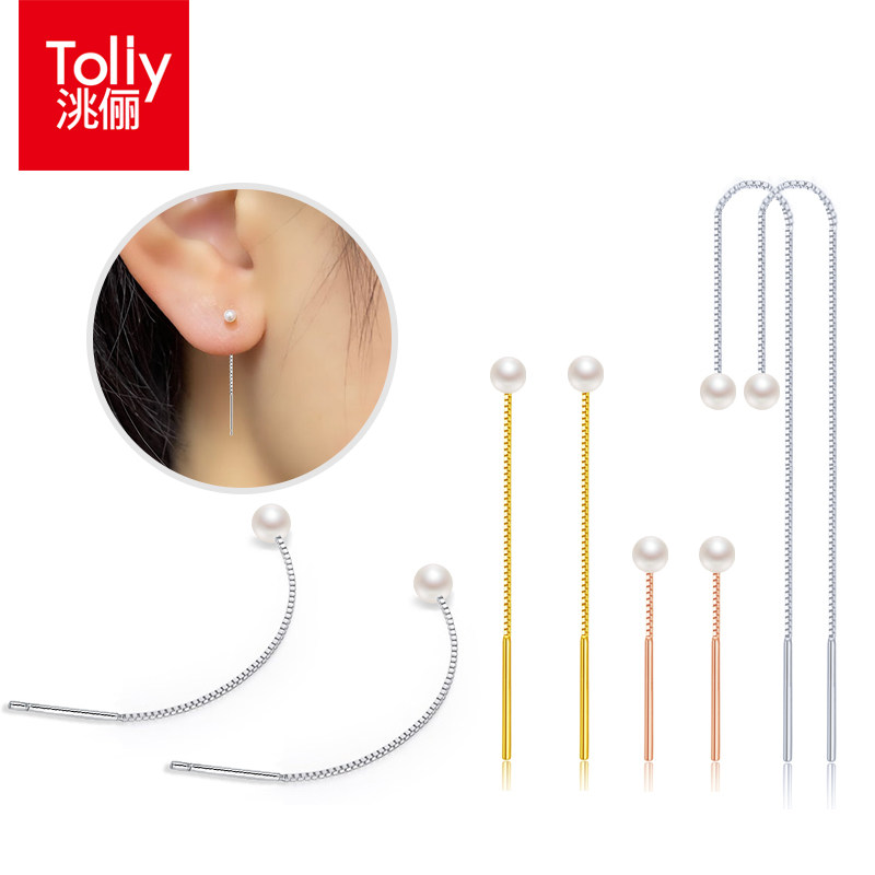 洮俪S925纯银盒子链耳线淡水珍珠耳吊女款个性银配件DIY耳环耳坠