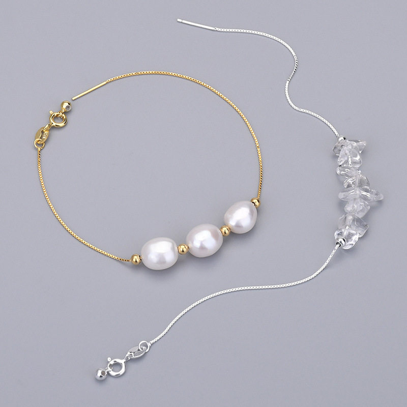 S925纯银万能手链 针式路路通盒子链珍珠diy配件可调节穿珠十字链