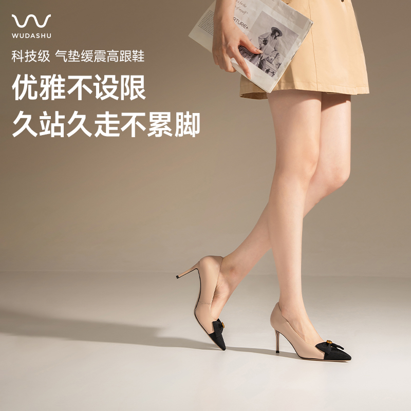 红云鞋吴大叔2025秋冬时尚气垫缓震小香风时尚简约尖头细跟女单鞋