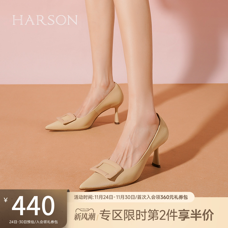 哈森法式高级感高跟鞋春秋新款尖头细跟女单鞋优雅正装鞋HL237108