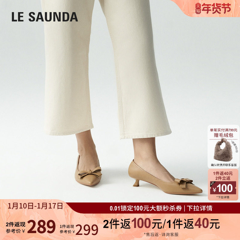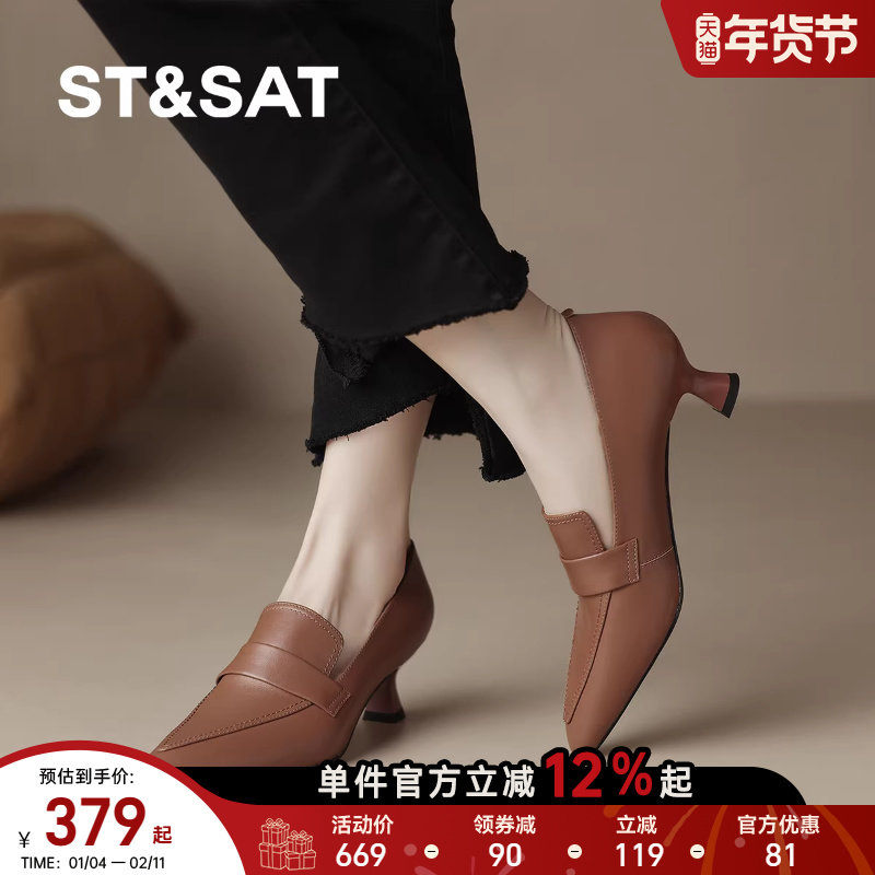 - 浅口中跟真皮单鞋
