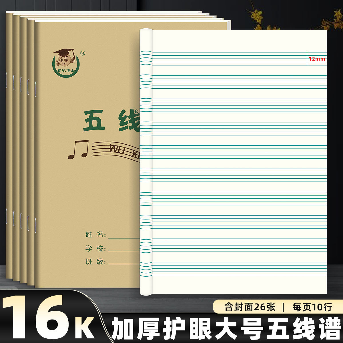 五线谱本子学生用乐谱本练习本牛皮纸本子16k小学生儿童划线宽距吉他钢琴音乐歌唱初学者专业音符琴谱册加厚