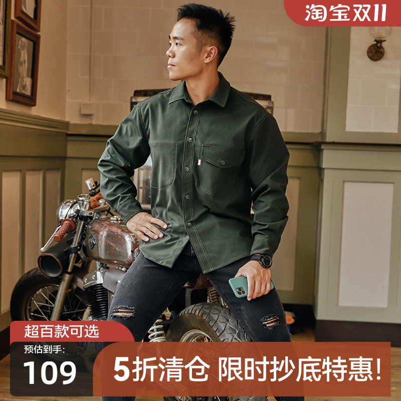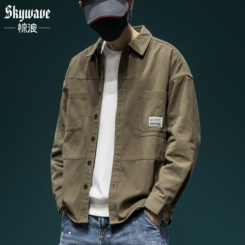 AlphaGym复古衬衫男 春季美式工装风硬核 潮流宽松翻领外套衬衣