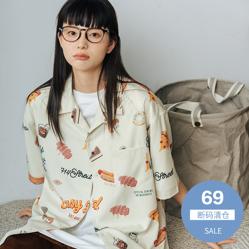 水曜日定休 日系复古衬衫男宽松ins潮牌夏季青春流行短袖衬衣港风
