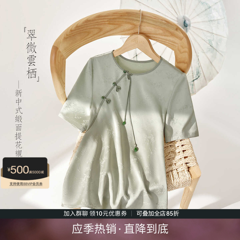 IHIMI海谧新中式缎面提花上衣女2025夏季新款国风修身复古衬衫