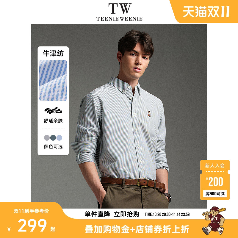 TeenieWeenie小熊男装简约时尚长袖条纹衬衫秋季休闲美式复古衬衫