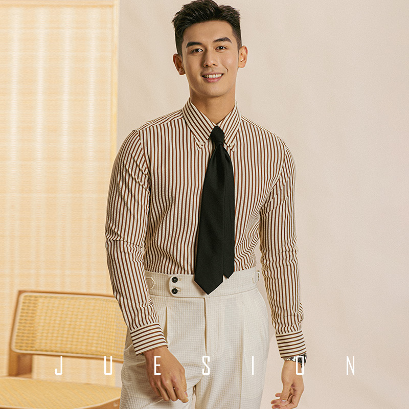 泡泡纱复古衬衫长袖男条纹日系设计感绅士大尖领夏季休闲衬衣薄款